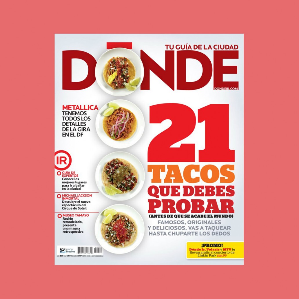 Dónde Ir is a monthly magazine published in the central region of México and in México City, it’s strength is being THE guide for anybody who wants to know what to eat, see and have fun in México City.