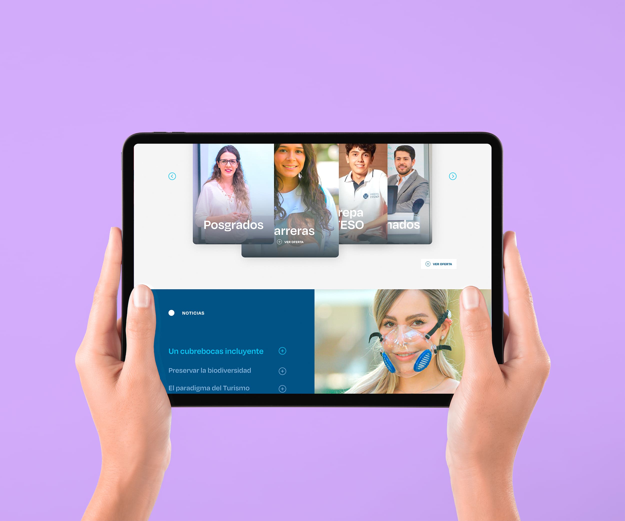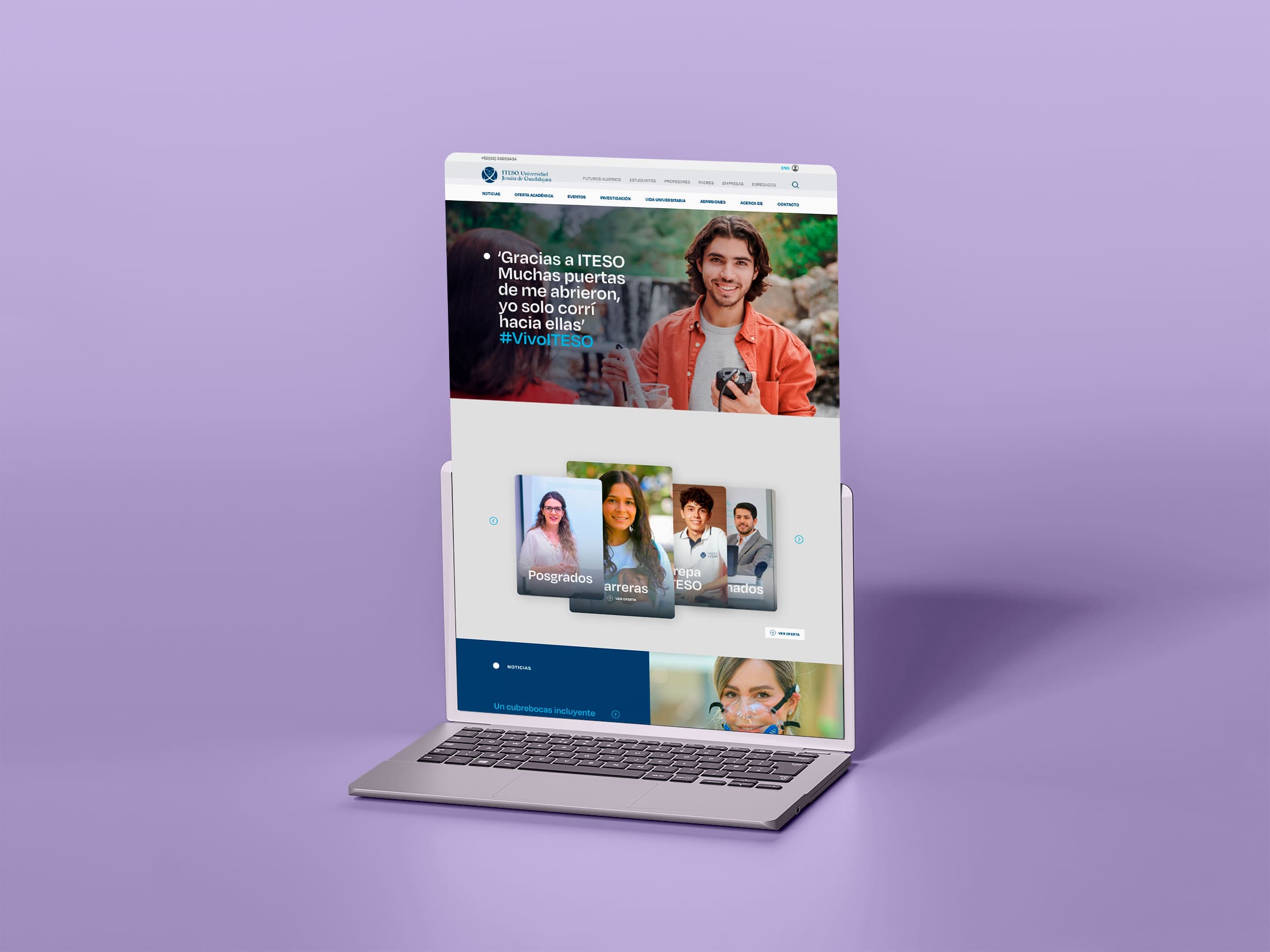 ITESO: A User-Centered Website The ITESO project included a comprehensive digital strategy, UX design (including user testing), UI design, the creation of a UI kit for development, and support in web development. User Centered Design The main challenge was to build an experience focused on the needs of all user profiles, ensuring that the site was user-friendly, easy to navigate, and frictionless. In this project made for Danilo Design, we proposed developing a project whose main focus was UX Design, understanding the needs of all user profiles, and applying methodologies to design an optimal experience. We designed an attractive and modern user interface (UI) that would present the site in a more user-friendly way. The key idea was that user-centered design would allow us to understand all profiles and design an intuitive, fluid, and friendly UX/UI, reinforcing the brand values. Digital strategy: understanding, benchmarks, and trends. UX Design: user-centered design, insights for innovation, information architecture. UI Design: digital branding and digital design. Design management: development of the UI kit and its implementation in web development.